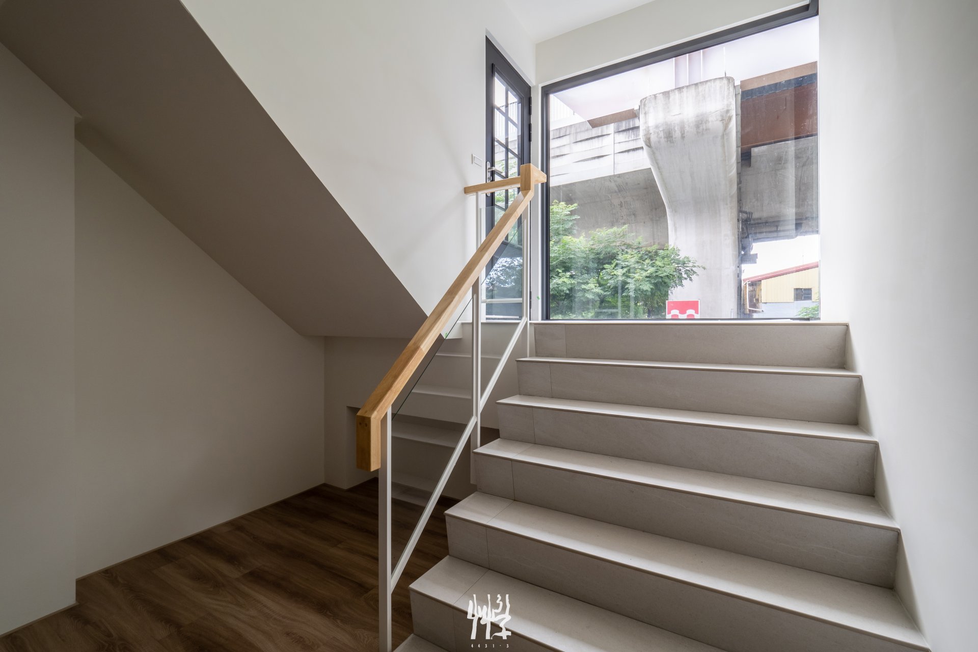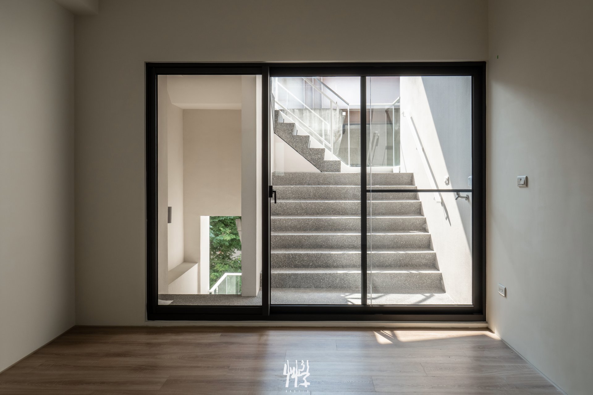 S 戶:以樓梯作為起居陽台的空間實驗 我們從透天住宅的生活與設計經驗出發,檢視其中的既有要素作為發想起點。歸納電梯透天的動線使用特性,低樓層的樓梯多半是延伸公共空間的日常活動,而電梯則屬於具明確目的性的垂直移動,服務於搬運或快速抵達私人空間;在這樣的狀況下,連接臥室樓層的樓梯屬於幾乎不使用的動線,多半閒置於透天的服務核區域。